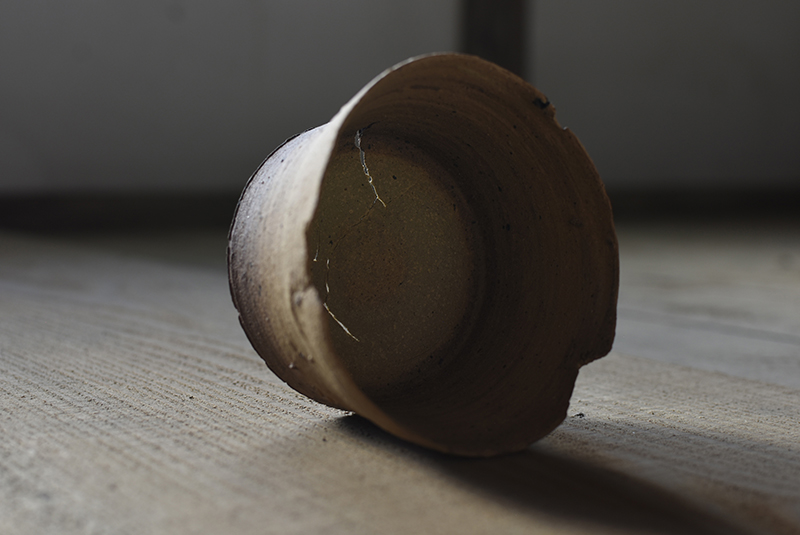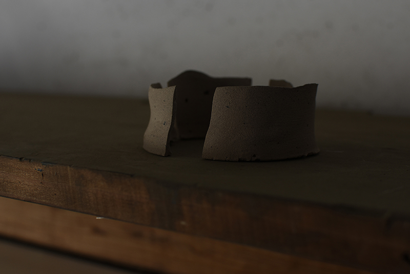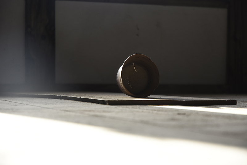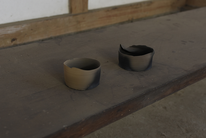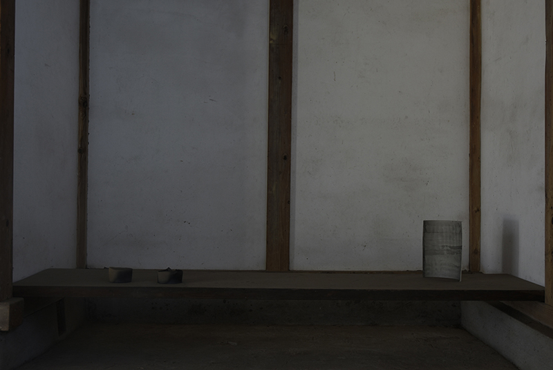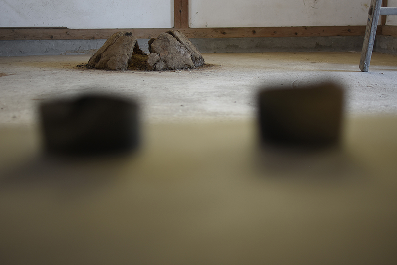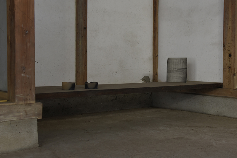 Installation with vessels and works on paper (occasionally in frame)